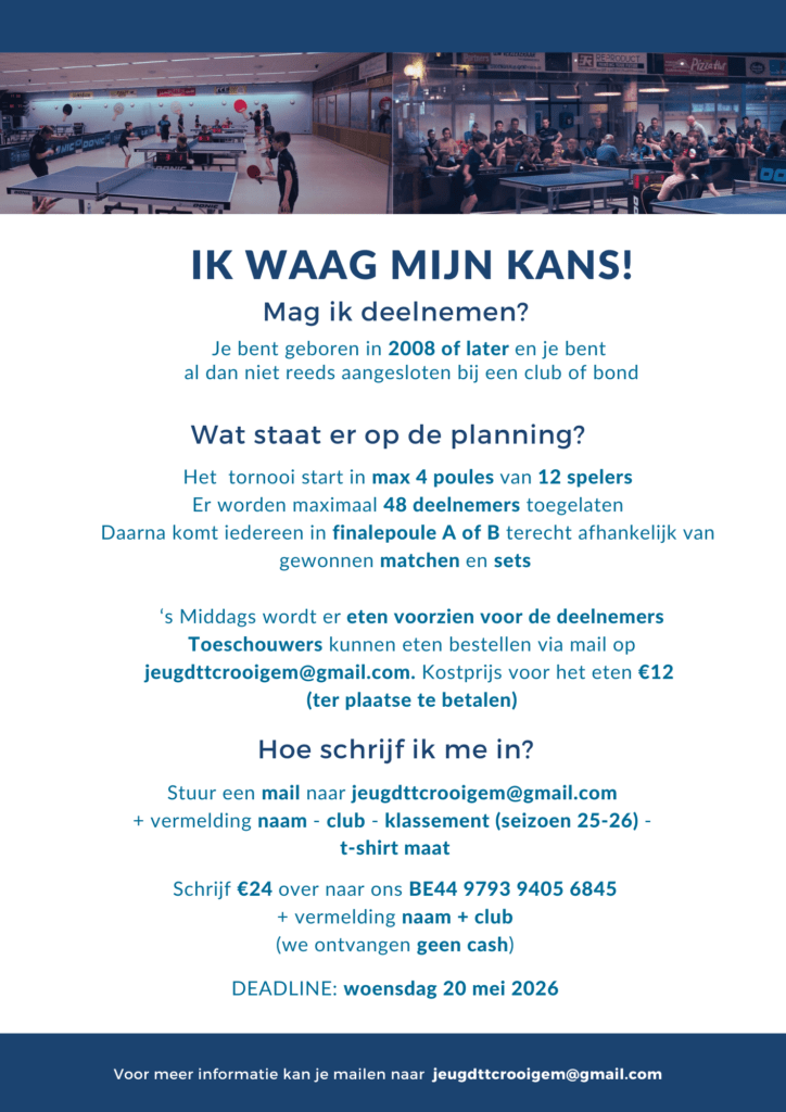 Stuur een mail naar jeugdttcrooigem@gmail.com